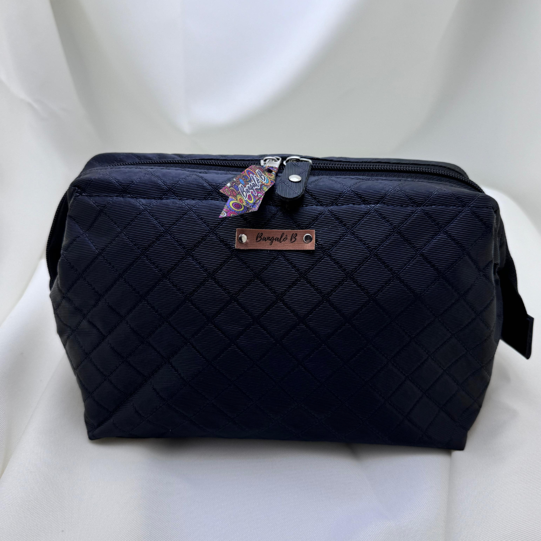 Necessarie Preta, abertura boca de lobo, em material sintético, forrada, com organizador interno feito em tela e fechamento em ziper. Formato 170x16x14cm.