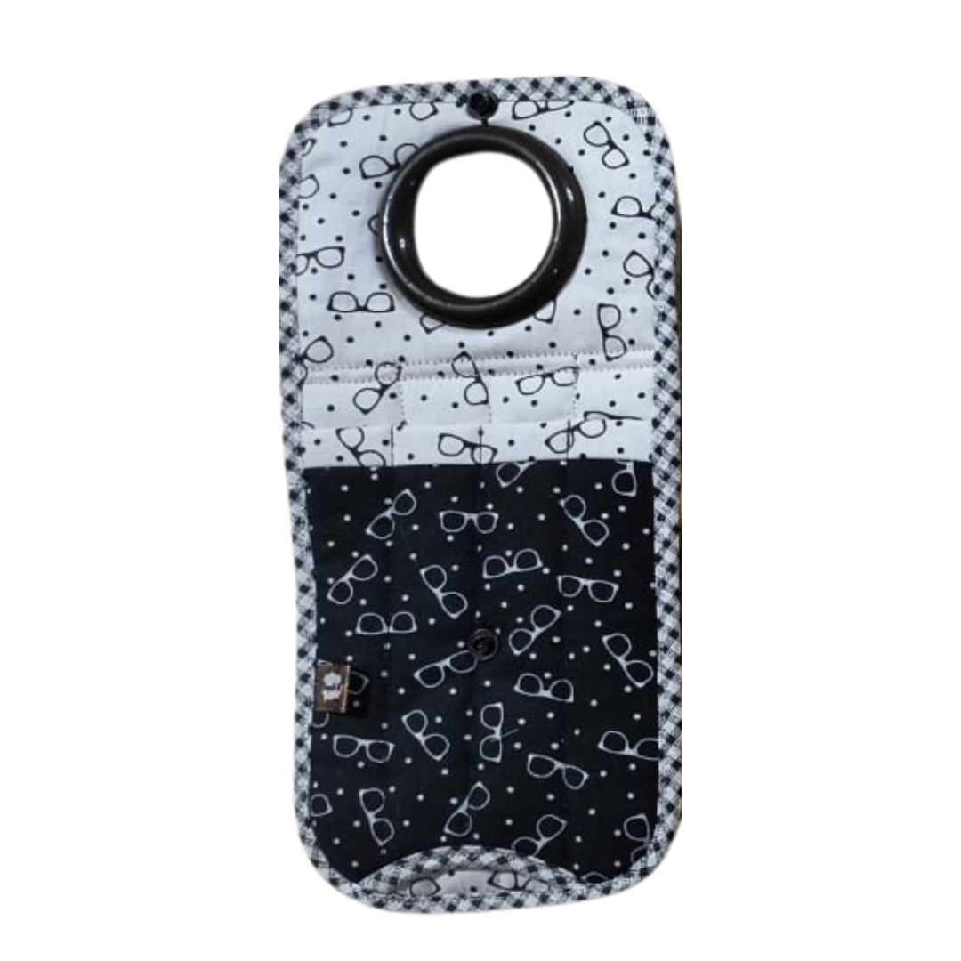 Feito em tecido de algodão, manta e argola em plástico. Medidas : 14 cm de largura 28 cm de comprimento