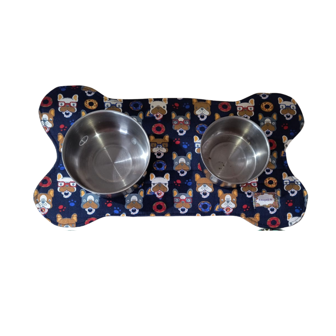 Tapetinho para colocar potinhos de água e ração do seu doguinho, para um ambiente mais organizado e estiloso. Em tecido com manta interna, formato 41x22cm. Duas faces.